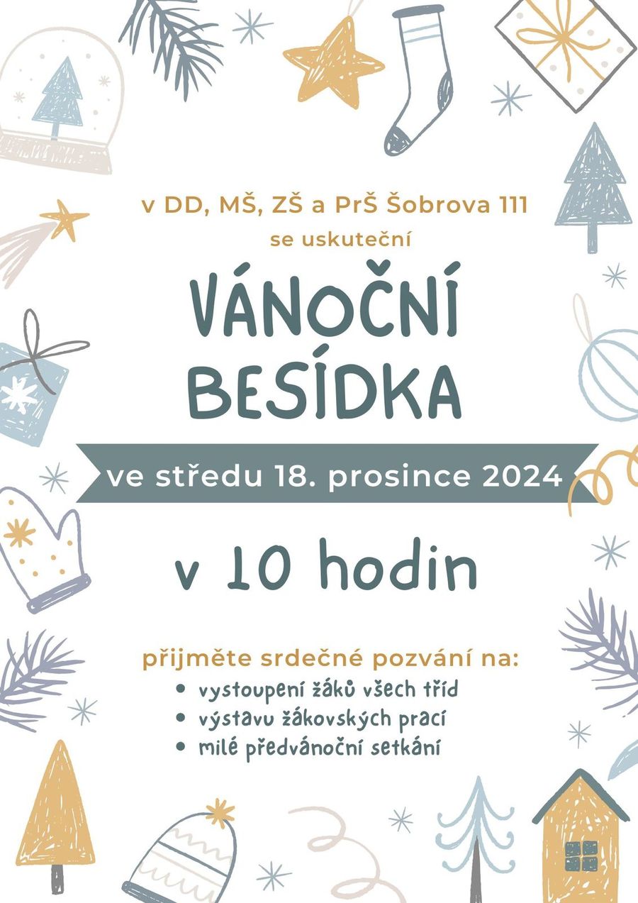 Srdečně vás zveme na tradiční školní vánoční besídku, kde naši žáci předvedou to nejlepší ze svého umění. Čeká vás pestrý program plný hudby, tance a vánočních říkanek v podání dětí všech tříd. Součástí besídky bude i výstava krásných žákovských prací s vánoční tematikou.